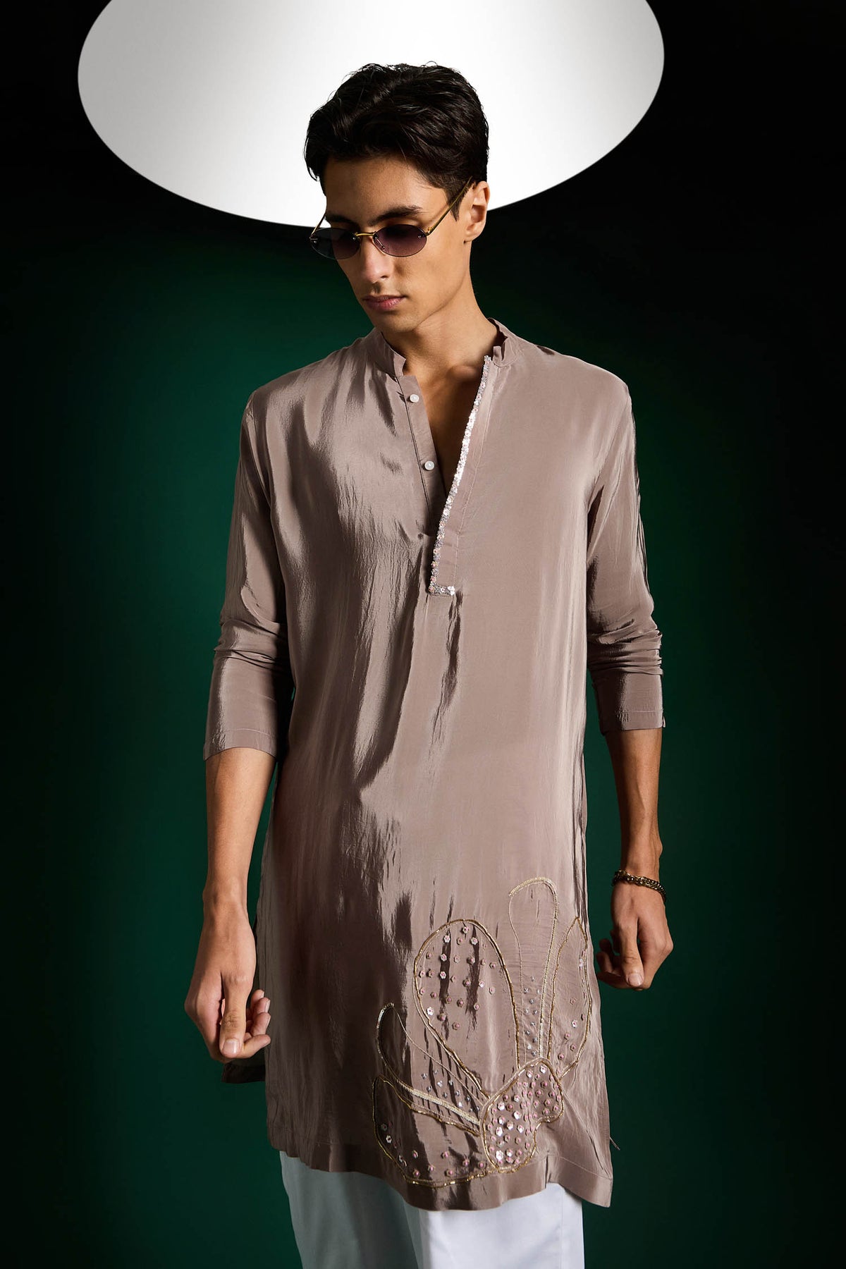 Petals Hand Embroidered Designer Kurta - Lilac Luster